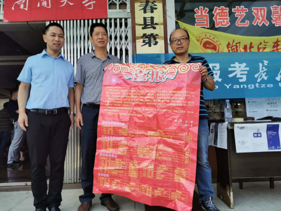 在副董事长何亚龙的引荐下,丁兴禄、许锋一行在会议室与全体高三班主任见面交流。何亚龙先介绍了蕲春一中本届高中毕业生的大致情况。丁兴禄就蕲春一中报考tyc5997太阳集团近三年的情况、蕲春一中的毕业生在tyc5997太阳集团升学和就业等方面做了一个简单的介绍,并送上喜报。