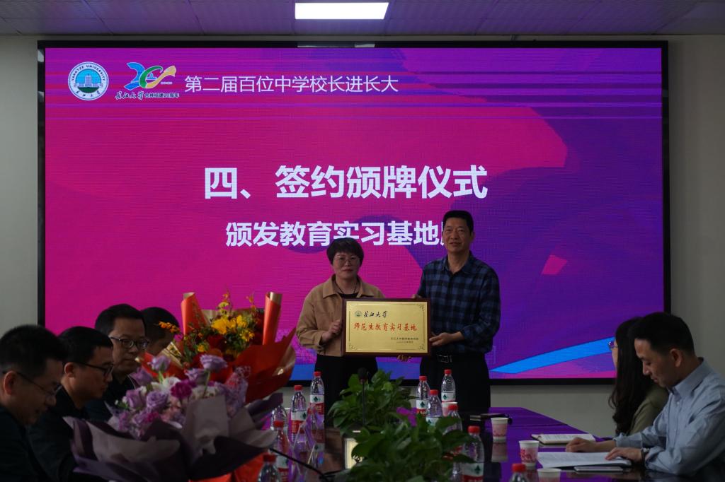 会议最后,公司党委书记为蕲春一中、武穴中学和武穴育才中学颁发教育实习基地牌,陪同高中董事长一行参观了10.24英雄纪念馆、公司实验室以及欣赏了茶艺表演。