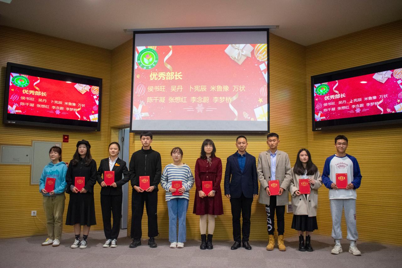 晚会在激情的舞蹈中拉开帷幕,氛围逐渐的活跃,员工们的兴致也逐渐被气氛带动起来!接着颁奖仪式的举行,颁奖的奖项为优秀部长,优秀副部长,优秀干事。学长学姐们的优秀工作成绩为20级同学们树立了榜样,支持着他们努力工作的信念。接着晚会正式进入表演环节,此次迎新晚会由员工会各部门准备,一共有14个节目,节目中间穿插着有趣的小游戏,调节着现场的氛围,缓解了即将上场的同学们的紧张,使整个晚会有条不紊地顺利进行,每个人的投入都汇聚在一起,吸引着台下的观众,青支队的热歌辣舞,更是燃爆全场,将晚会推向高潮。