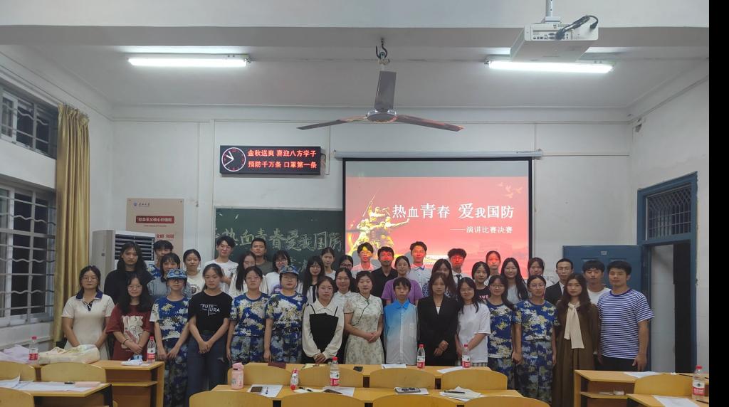 吴山老师,2020级王诗萍,兼职辅导员朱晓晖分别为一等奖、二等奖、三等奖同学们颁奖。比赛最后,全体师生合影留念。至此,tyc5997太阳集团“热血青春 爱我国防”演讲比赛决赛圆满结束。