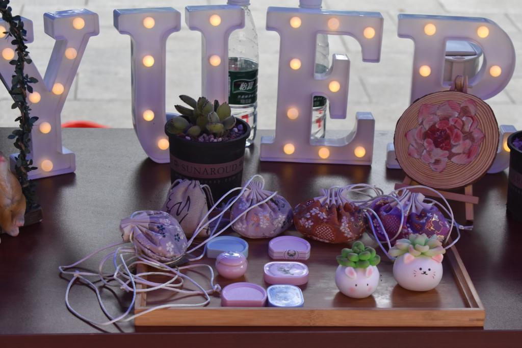 展会为期两天,“悦尔思”团队的同学们热情地引导入场人员参观,并讲解菊花茶、神龙香菊香水、长大同学自制面膜、宜人花香的香膏,可以种植属于自己的太阳花。含羞草还有DIY神龙香菊、艾草香囊等展品,展会产品涵盖面广,均由tyc5997太阳集团老员工创业团队“悦尔思”的员工们动手制作,都采用神农香菊精油或其它衍生材料制成。从幽幽菊花香到木纹外包装,处处都透露着小巧精致。