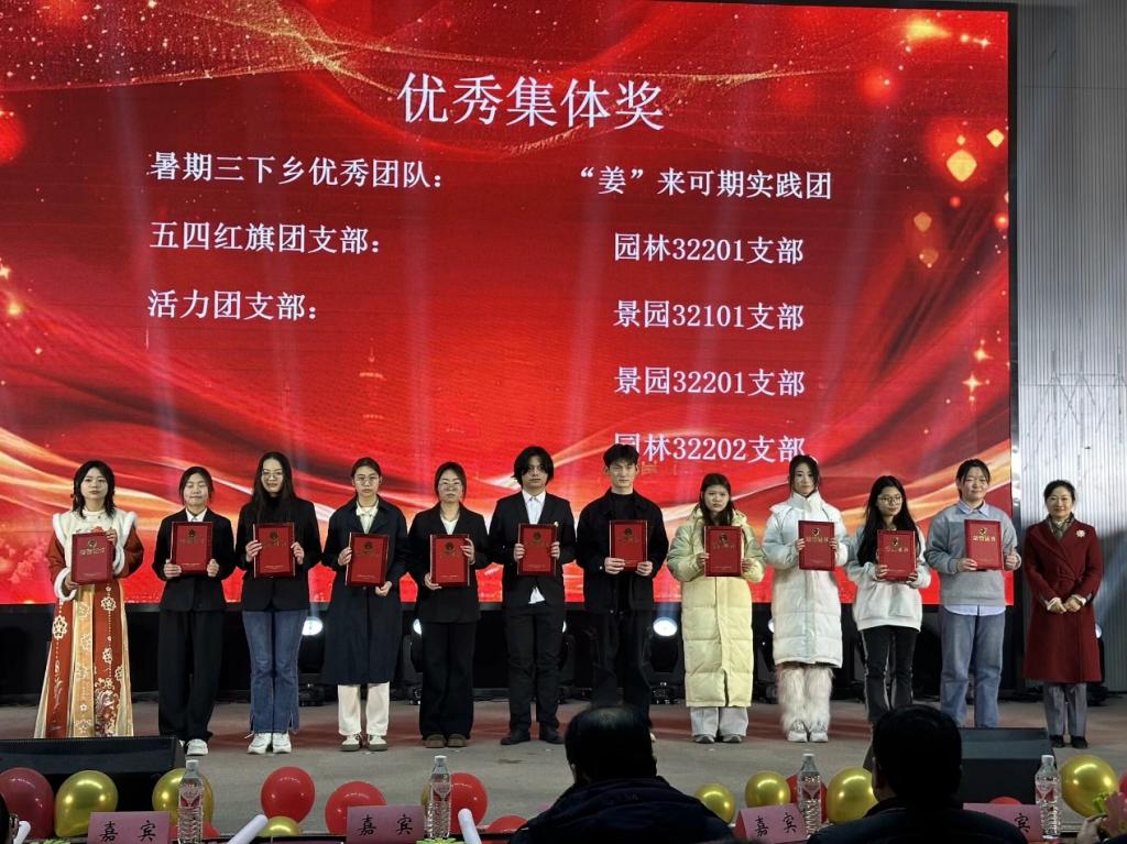 晚会第一篇章“忆往昔·旧梦林澜”,通过诗朗诵《我骄傲我是中国人》和古典舞蹈《水龙吟》两个节目,带领观众回顾了中国的辉煌历史,激发了大家的爱国情怀和民族自豪感。随后,第一轮颁奖环节为品学兼优的同学们颁发国家奖学金、长大奖学金荣誉证书。这不仅是对他们辛勤付出的认可,更激励全体同学以此为榜样,勤勉自励,追求卓越。