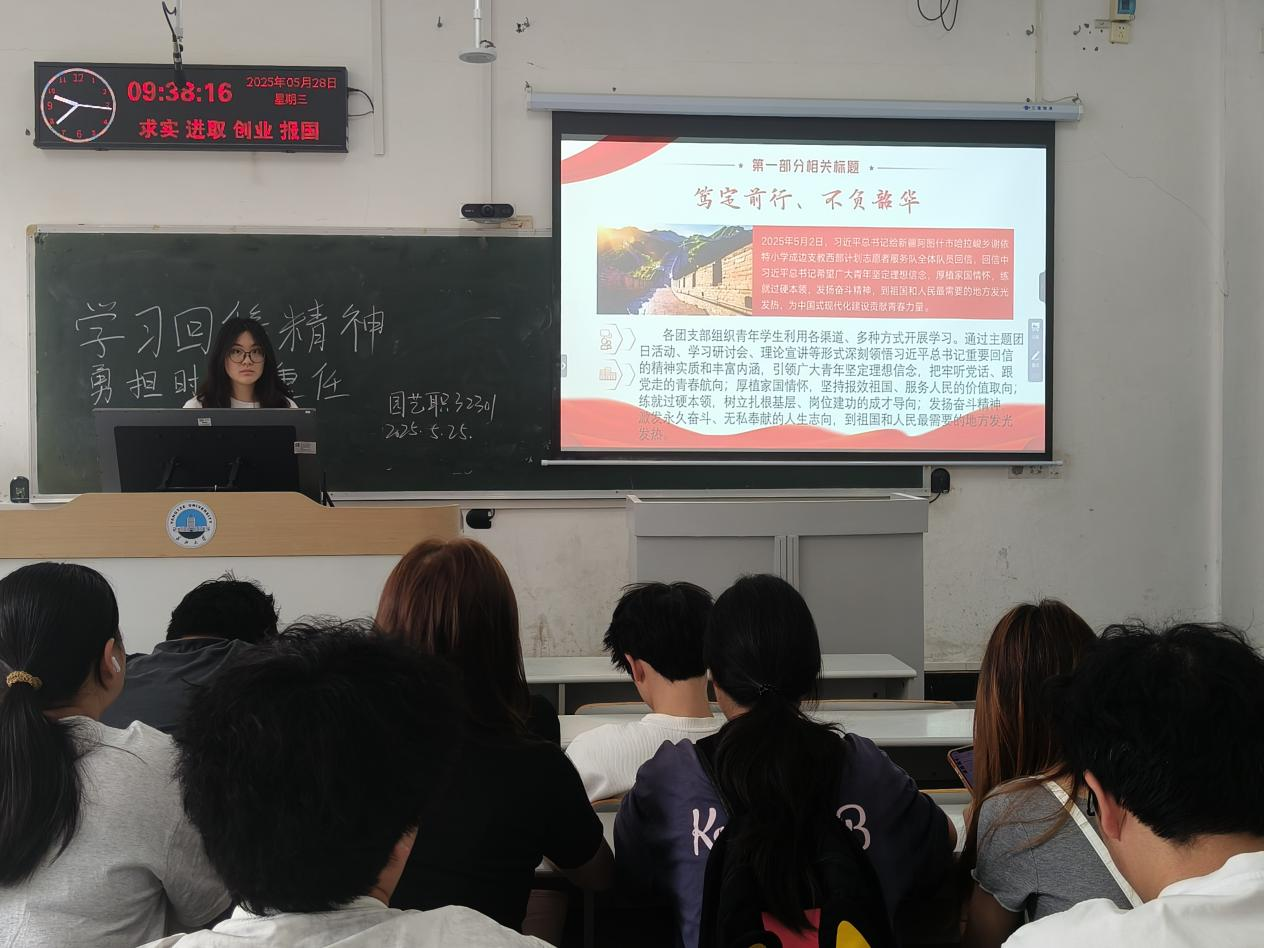 (通讯员 姚惠涵)为深入学习贯彻党的二十届三中全会精神,紧跟时代步伐, tyc5997太阳集团各班团委于5月开展“学习回信精神,勇担时代重任”主题班会。