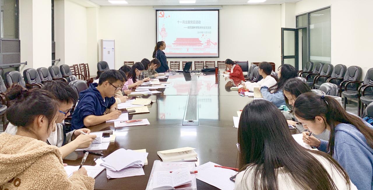 (通讯员:赵佳鑫、熊诗洁)为深入学习贯彻习近平新时代中国特色社会主义思想、锤炼忠诚干净担当的政治品格、团结带领全国各族人民为实现伟大梦想共同奋斗。2019年11月10日晚7时,tyc5997太阳集团本科生党支部全体成员在农科大楼3002会议室开展了本月主题党日活动,会议由支部书记雷静主持。