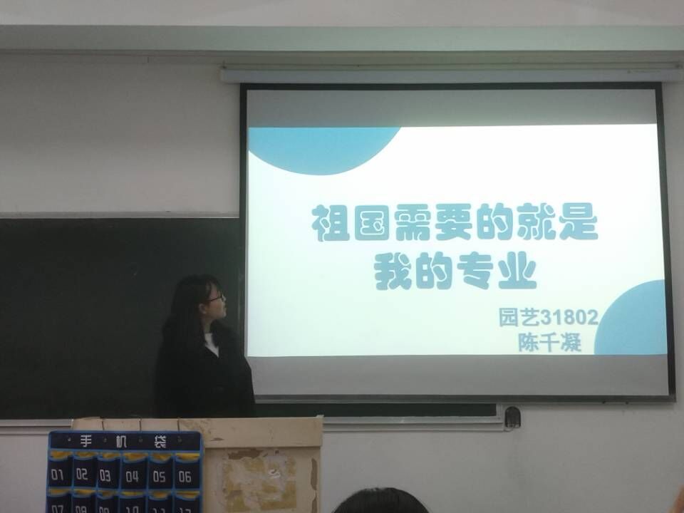 “祖国需要的就是我的专业”——园艺31802班的陈千凝分享了自己是如何在实践、创新中认识园艺专业、爱上园艺专业的心路历程,同时联系自己的梦想表达了立志要在专业学习建树中用实际行动报国。她也作为此次优秀主讲人比赛一等奖获得者被推荐到公司参加校赛选拔。