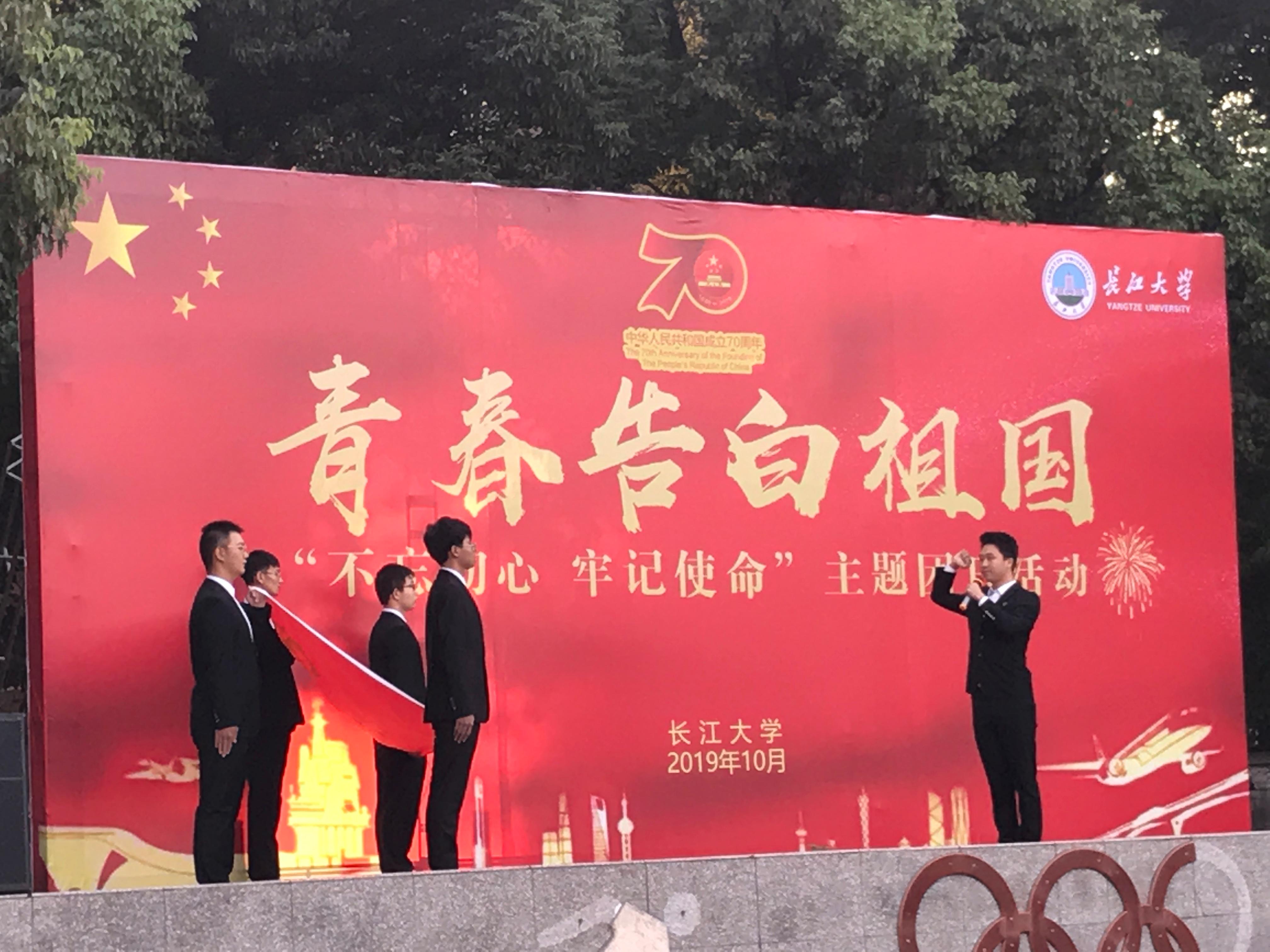 (通讯员:周森山/赵宇/田铁)2019年10月1日上午7时整,tyc5997太阳集团“青春告白祖国”升国旗仪式暨“不忘初心、牢记使命”主题团日活动庄严举行,tyc5997太阳集团领导班子、辅导员和全院在校员工热情高涨地参加了教育仪式。作为重温入团誓词环节的领誓人——共青团员标兵、园艺31702班刘阳同学激动地说:“虽然这早已经不是我第一次参加升旗仪式了,但是听到国旗护卫队整齐的步伐声,看到那抹鲜艳的红色冉冉升起,还是会热泪盈眶,会在心里为我们伟大的祖国久久叹息,更幸福且自豪于能在新中国70华诞之际,用这样特殊的方式向祖国献礼!”