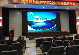 接下来的议程为专业介绍,首先上台发言的是风景园林系主任肖国增老师,他向同学们介绍风景园林专业的学科范畴、就业去向与职业类别、专业办学条件,并就近几年行业的前景对专业的发展历程做了详细的分析,同时向员工展示了往届员工作品,对在场的同学提出了殷切希望。之后由茶学系主任赵振军老师向同学们详细介绍了茶学专业的基本情况、办学资源以及就业方向,同时列举了几位茶学专业的优秀员工事迹,令同学们啧啧称赞。随后,园林系主任张威威老师紧接其后,详细介绍了园林专业的教学平台与团队力量以及良好的学术氛围,以及本专业的培养计划和对未来的展望。副经理肖波副教授就园艺专业的含义、培养目标、教学计划与学科内容展开详细的解说,让新生们耳目一新,豁然开朗。