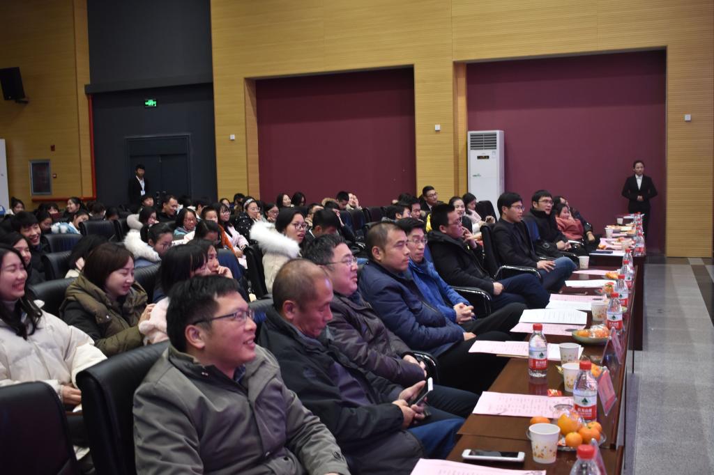 晚会中,共有三项颁奖活动,分别为优秀员工个人奖、员工先进集体奖和优秀教师奖。副经理袁龙义老师为获得各类奖学金同学依次颁奖,党委副书记文启华老师各类先进典型颁奖,副经理许锋老师为在各类竞赛评先中获得省级和国家级荣誉的同学颁奖,优秀教师代表张建老师为优秀员工集体颁奖,优秀教师由陈中义经理和莫晓明书记颁奖。颁奖期间也穿插着轻松有趣的线上抽奖活动,幸运中奖者也在回答了诸如“校训”、“建校时间”、“社会主义核心价值观”等问题后,领取了暖心的新年奖品。最后,晚会随着18级新生为大家带来的大合唱《爱我中华》进入尾声。激昂嘹亮、响彻云霄的歌声饱含对民族5000年文化的热爱与对庆祝改革开放40周年的喜悦,在大家的欢欣与感动中,晚会圆满落幕。