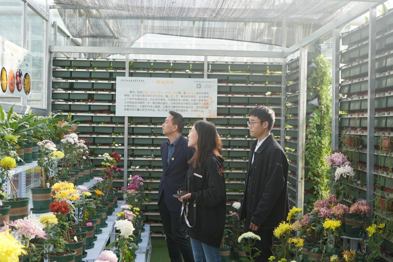 据了解,此次菊展开放时间较长,每天都有老师和同学前来观赏,甚至还有慕名而来的校外参观者。菊展工作人员热情地引导前来观赏人员入场以及介绍有关菊花的相关知识。例如讲解标本菊花盆栽、菊花鲜切花、菊花造景、多肉盆栽、绿植盆栽、无土栽培草莓等。同学们纷纷惊叹和感慨植物的神奇并表示在此次菊展中受益匪浅。本次玻璃温室展出的菊花共计一百二十多个品种、两千余盆。除了常见的黄色、白色、红色、橙色品种以外,还有罕见的绿色品种,吸引了大片参观者的目光。以花入道,以茶会友。会展现场不仅有千姿百态的菊花,还有茶艺专区,让参观者赏菊的同时观赏到技艺高超的茶艺表演。虽然参观者来自各个年龄段,跨度较大,却都能在这里找到属于自己的快乐。据项目负责人侯书旺统计,截至11月10日,入场人次已经突破一千人次。