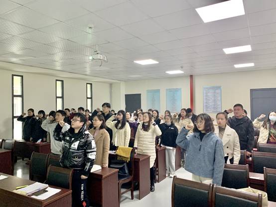 会议第三部分,全体党员齐齐宣誓,表达了为共产主义事业奋斗终生的决心。随后,支部书记王娟对新进党员进行鼓励并表示希望开展更多的支部活动,广大党员同志应发挥积极性、先进性,要“守初心,担使命”,广泛参与员工工作,守住为人民服务的初心;同时也要学好本领,以后更好地投入到社会主义现代化建设中去。