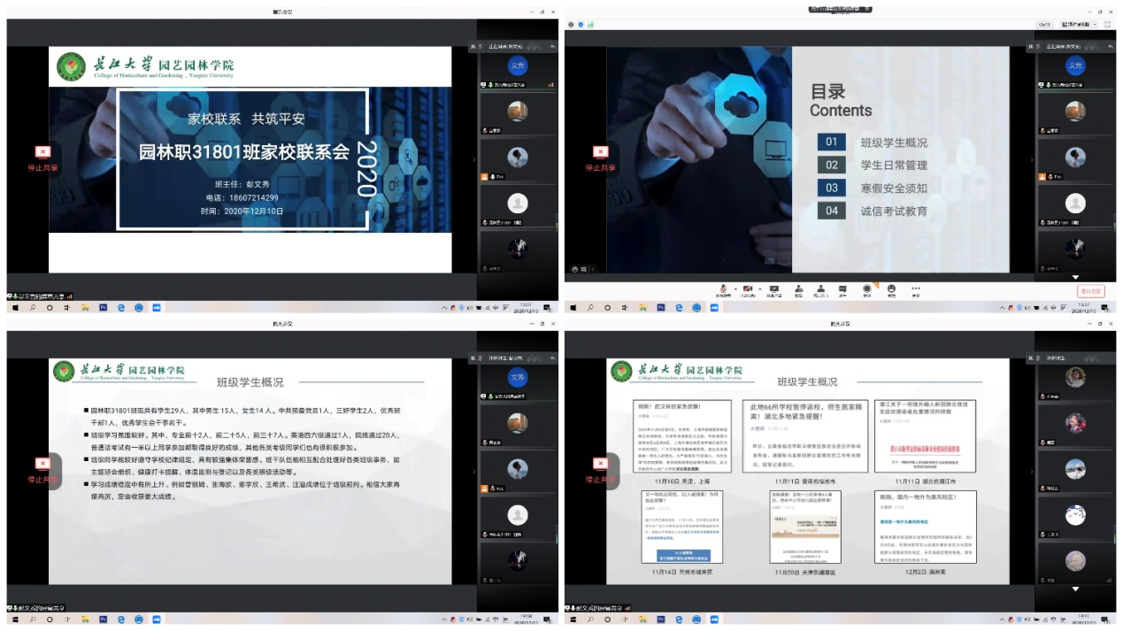 (通讯员:曾丽娟 彭文秀)为进一步加强公司与家长之间的联系,增进家长对公司工作的了解,让家长更全面认识公司常态化疫情防控日常管理工作及员工在校学习生活情况,共同做好寒假安全教育工作,真正达到家校携手,共筑平安的目标。2020年12月10日起,tyc5997太阳集团组织以班级为单位召开家校联系会。各班借由腾讯会议,QQ群等线上交流平台召集员工及其家长在线交流,确保每位员工和家长对各项要求全面知晓,落到实处。