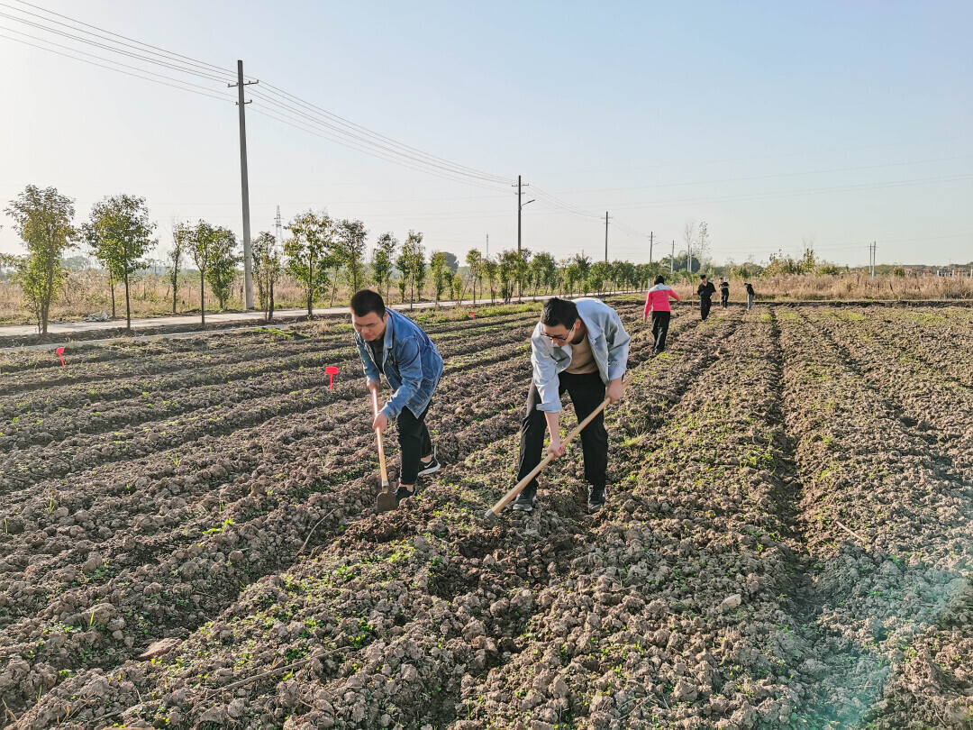 图为同学们在蔬菜地里整地,为播种做准备