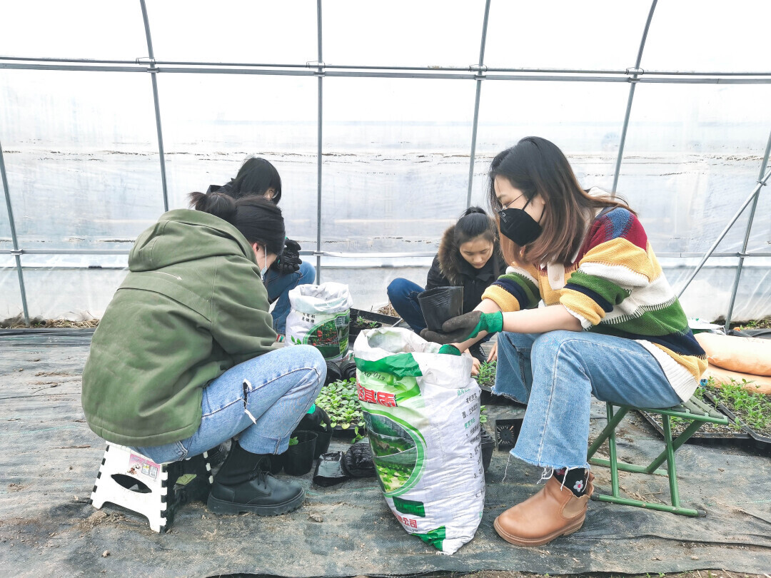 图为同学们在进行花卉移栽