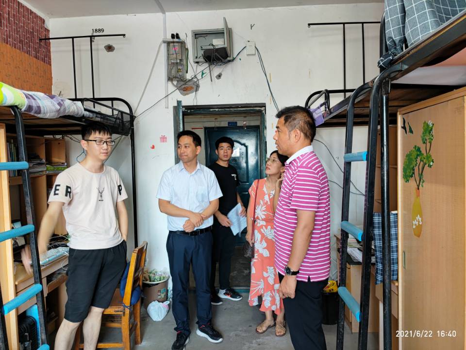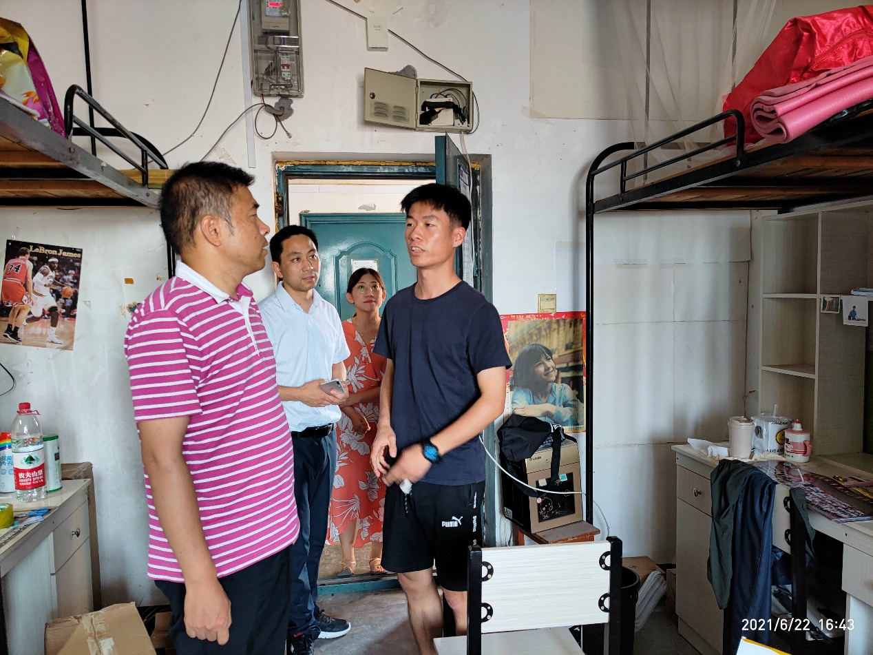 (通讯员:章崇烁 彭文秀)6月22日下午,tyc5997太阳集团经理许锋、党委副书记平先锋、学工办主任彭文秀、毕业生年级辅导员吴山等老师走访毕业生员工寝室,详细了解毕业生学习、生活、就业和思想情况,加强毕业生安全教育,引导毕业生文明离校。