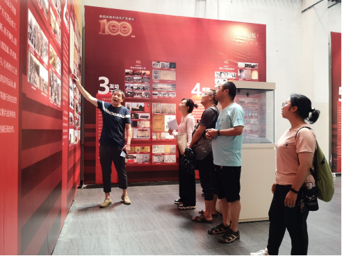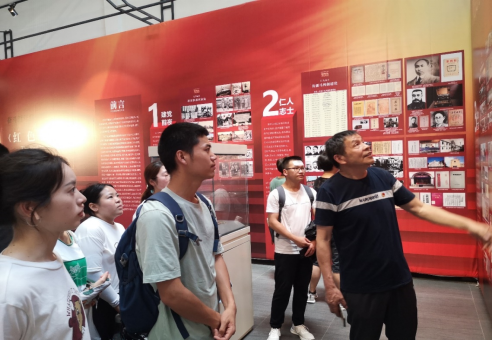 上午,在公司老师的带领下,一行人来到了传承院的红色历史展厅,观看了《红色记忆与实物展》,并由谢荆江馆长亲自为我们讲解。在党的百年历史中,谢馆长对照着墙上的照片和展柜里的实物为我们讲述了中国共产党的诞生,中国共产党在成立前夕做了哪些准备,中共一大又是如何召开的;在看到一把已经泛黄的手枪的图片的时候,谢馆长更是激动地说“那可是朱德在武昌起义中使用的手枪咧,现在就放在国家军事博物馆里!”随后又带领为我们参观和翻阅了桌上一些陈列的书记和图册。通过谢馆长绘声绘色的讲解,中国共产党这一百年的光辉历程仿佛就在眼前,让我们切实体会和感受到了中国共产党不屈的风斗精神和敢于革命的斗争精神。