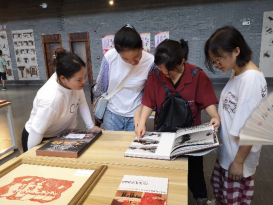 图:艺林学子翻看党史书籍图册