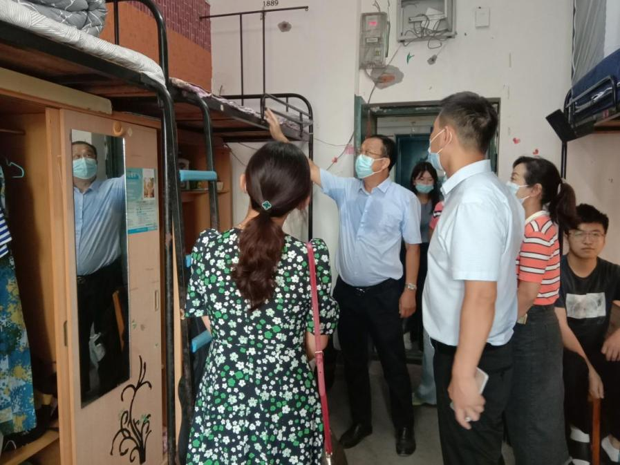 在走访宿舍过程中,老师们认真查看了员工宿舍的环境卫生、防疫情况、消防安全设施等情况,并提醒注意宿舍用电、人身财物等安全问题,询问了同学们的学业规划和当前状况,对同学们提出的问题给出相关建议。