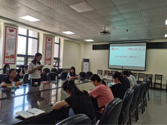 学习完以上内容后,在“党员干部如何做到‘清廉有为’”的主题研讨环节中,向琼瑶同志谈道:“党员干部作为人民的公仆,要切实做到警钟长鸣,廉洁自律,牢固树立正确的人生观,价值观,权力观,是党和人民对每一名党员干部的基本要求,也是每一名党员干部应该遵守的基本准则,也是广大人民群众的期待和愿望,随着社会不物质文化生活不断丰富,物质幸福的时代已经过去了,面对精神生活的种种诱惑,有个别党员干部贪污腐败,生活腐化,一步步走向犯罪深渊,其过程结果发人深省,因此,我们每一名党员干部都应引以为戒,切实做到清廉自律,有为。无论是在学干工作中还是在将来踏入社会上的工作中,都必须保持清白、廉正,在学好专业知识的同时,做到一丝不苟,将来成为一个大有可为的人。”她也表明了自身在坚定理想信念、增强历史自觉、弘扬优秀传统文化、加强党性锤炼等方面存在的差距和不足以及我们应该如何发挥好党员的先锋模范作用。支部书记卜文琼老师代表党支部委员会向与会党员分享了自己对“清廉有为”的看法,提醒我们全体党员在任何时候都能不忘初心,提高自身的纪律意识,积极保持党员的精神面貌,做一名合格共产党员。
