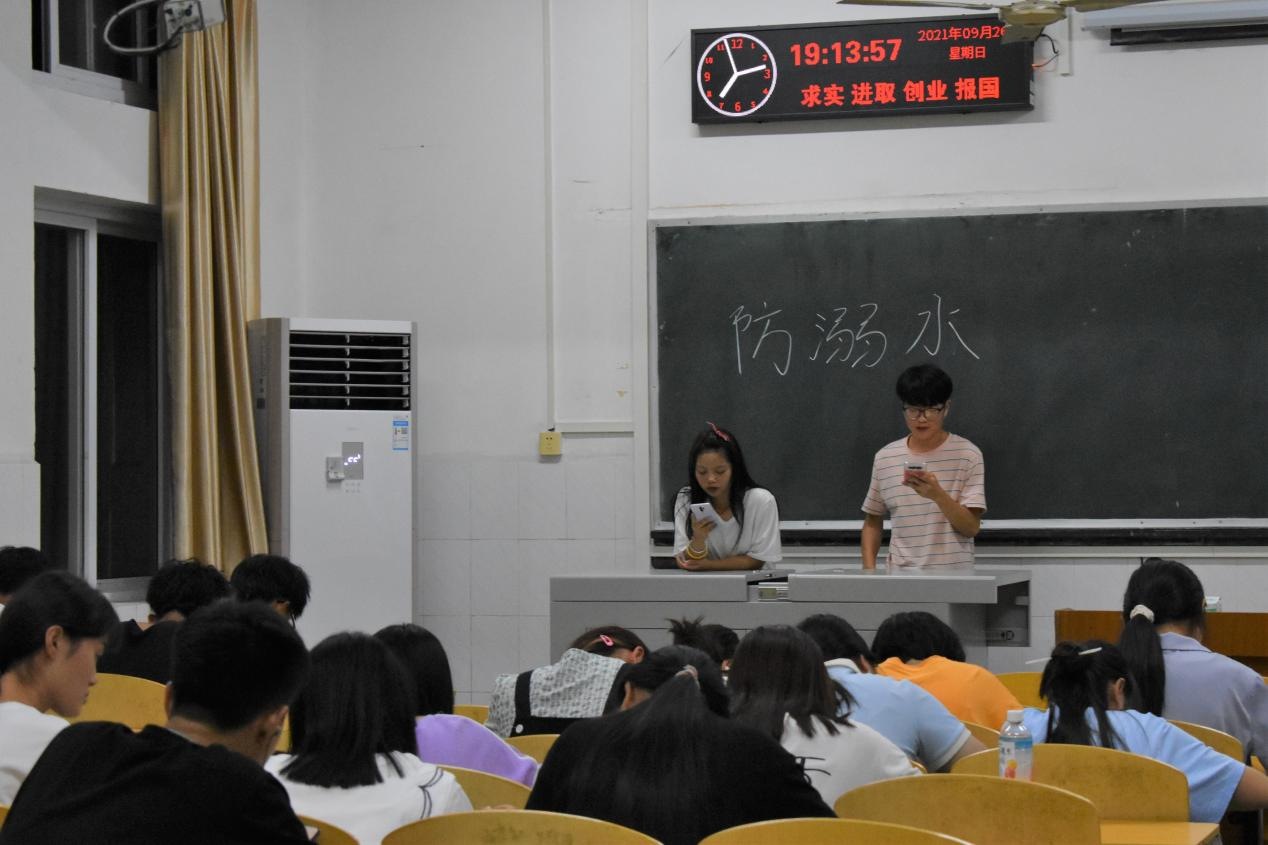 21级新生在9月26日还开展了防溺水安全教育班会活动,提高自身安全意识。