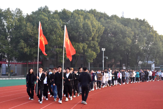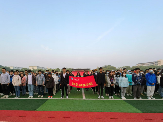 (通讯员:陶珣 曹婷钰 胡淑涵 何海旭)为深入推进党史教育,传承红色基因,将党的领导贯彻落实到校园的方方面面,继承发扬党的伟大思想,展现园艺园林学子青春光彩,2021年10月25日早上6时48分,tyc5997太阳集团于田径场举行了“千班唱红歌,万人健康跑”升旗仪式。党委副书记平先锋、学工办主任彭文秀,辅导员卜文琼,吴山老师,兼职辅导员乔睿、刘冬杰以及tyc5997太阳集团全体员工参加此次活动。