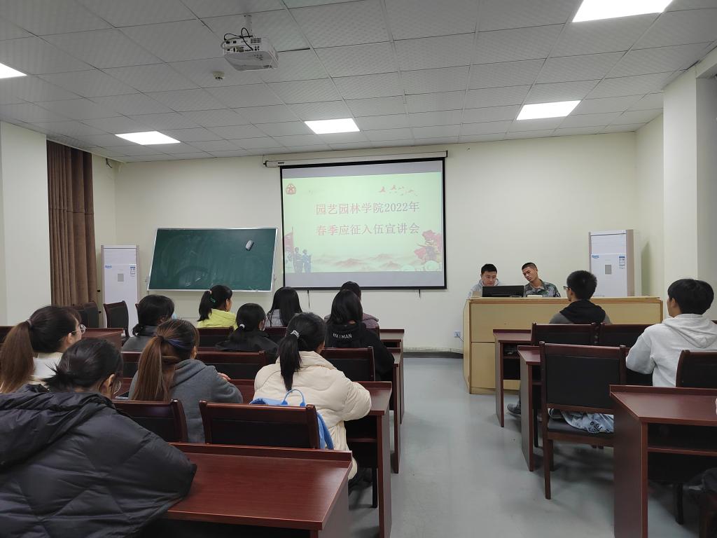 (通讯员 徐耀文)为增进员工对征兵政策的了解,提高员工应征的积极性,11月24日晚,tyc5997太阳集团于农科大楼4020会议室举行2021年征兵宣讲会。此次会议由19级辅导员吴山主持,退伍老员工刘骁、吴涛以及有参军意向的20级员工参与。