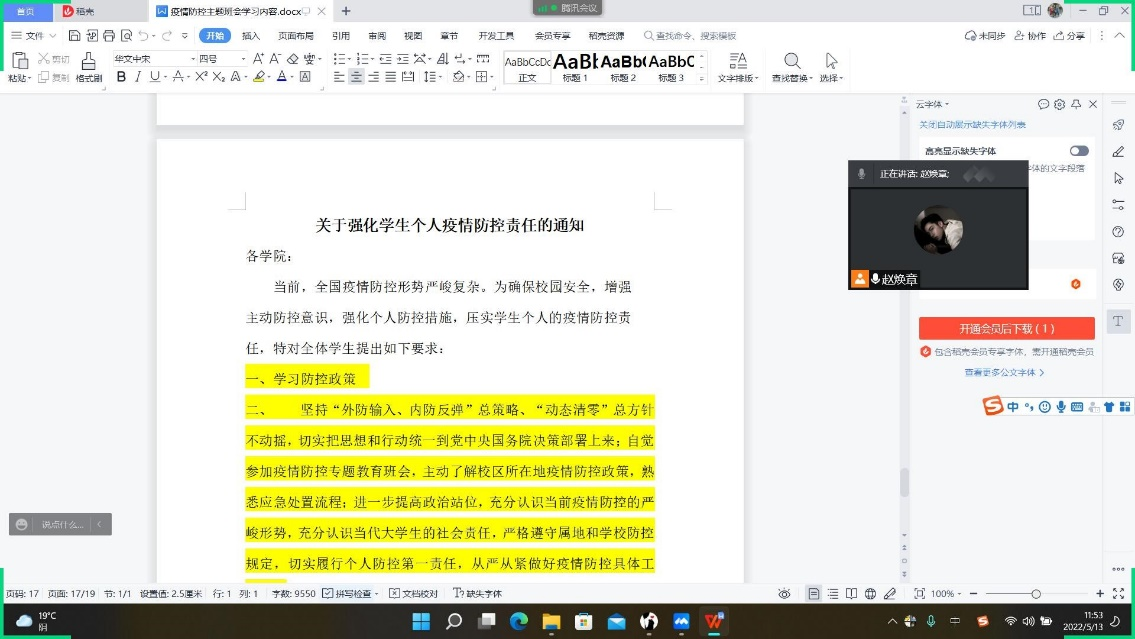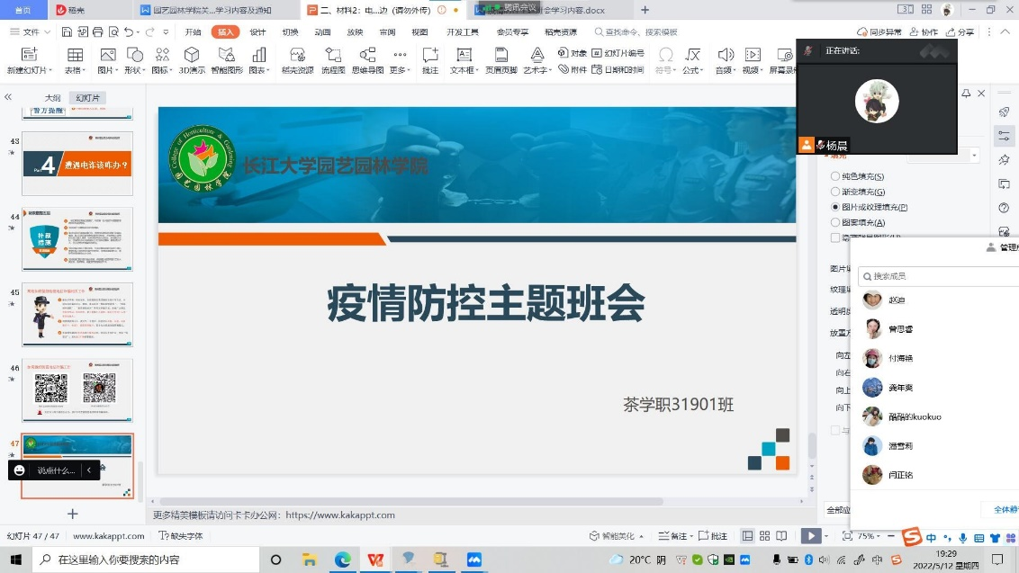 班会内容主要带领同学们认真学习《高等公司新冠肺炎疫情防控技术方案(第五版)》、《近期研究生疫情防控工作提示》和《tyc5997太阳集团新冠肺炎防控指挥部通告》(2022年第5号)等相关制度和要求,并列举具体案例,向同学们讲清楚讲疫情防控形势的严峻性、实施疫情防控措施的严肃性、高校在疫情面前的“脆弱性”。