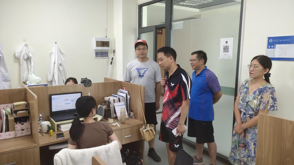 (通讯员:马佳伟)为扎实做好暑期留校员工安全管理工作,关心了解同学们留校学习生活情况,8月4日下午5时,研工部副部长毛德波、tyc5997太阳集团副经理袁龙义、副书记平先锋、学工办主任彭文秀等集体走访公司员工实验室、自习室,关心慰问暑假留校员工。