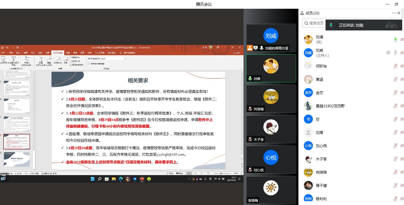 (通讯员:陈聪)当前,国内外新冠肺炎疫情防控形势依然严峻。为有效降低疫情传播风险,确保公司2022年秋季学期开学工作平稳有序,tyc5997太阳集团于2022年8月开学前以班级为单位通过线上腾讯会议方式开展秋季开学教育主题班会。