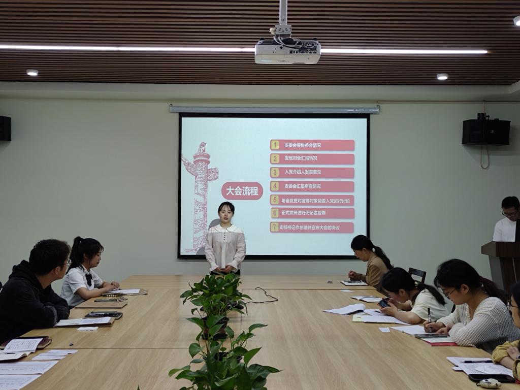 本次会议主要分为五月主题党日活动、接收发展对象为预备党员、预备党员转正三个部分。在五月主题党日活动中,王挪同志带领大家深入学习《习近平给中国农业大学科技小院的同学们的回信》、《关于在全校深入开展学习贯彻习近平新时代中国特色社会主义思想主题教育的实施方案》;支部党员集体诵读《中国共产党章程》第五章党的基层组织相关内容;就作为一名员工党员,谈谈对开展主题教育学习的认识展开讨论。