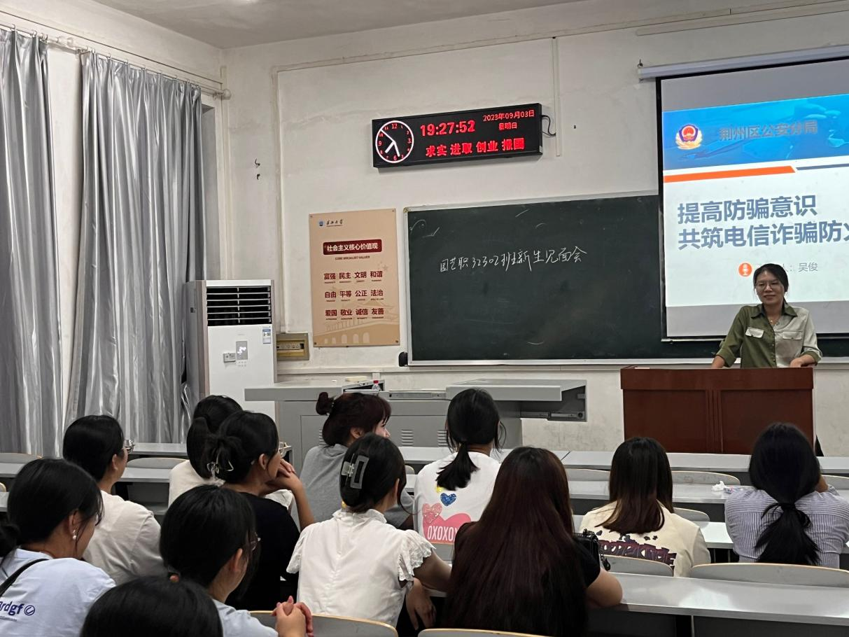 专题班会从电信诈骗基本介绍、了解电信网络诈骗类别、如何识别防范电信诈骗、防诈骗安全知识宣传以及遭遇电信诈骗如何及时恰当采取措施共五部分展开讲解,通过典型案例讲解揭秘常见诈骗套路,为同学们讲解电信网络诈骗的双面影响。