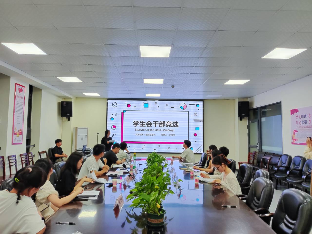 会议第三部分,参与第四届研究生会干部竞选的李书圣、高延鹏、徐帆等同学上台竞选演讲,从自我介绍、工作经验、竞选优势和工作展望这几个方便来进行演讲,表达留任的初心和责任。