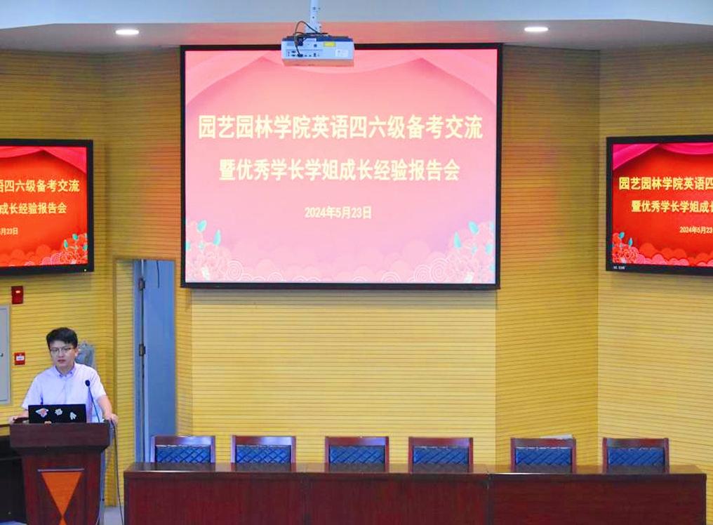 (通讯员 彭明俊 李钰铃)为进一步加强公司学风建设,提升公司英语等级考试一次性通过率,5月23日,tyc5997太阳集团在农科大楼1056报告厅召开四六级备考交流暨优秀学长学姐成长经验报告会。此次活动特别邀请园林职32001班岳雅诗、景园32101班徐菁作主讲嘉宾。公司2023级全体员工参加了此次报告会,会议由辅导员张颖旭主持。