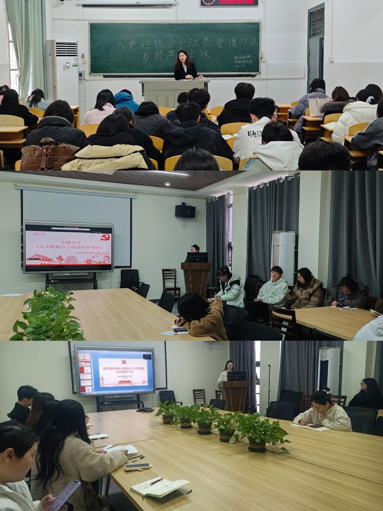 会议由各党支部书记卜文琼老师、张颖旭老师、吴山老师主持并详细解读《tyc5997太阳集团入党积极分子动态管理办法》,重点介绍了入党积极分子的推荐标准、确定程序、培养措施及动态调整机制,明确了培养目标和管理要求,首在通过一系列科学合理的制度设计,确保入党积极分子队伍的先进性和纯洁性。