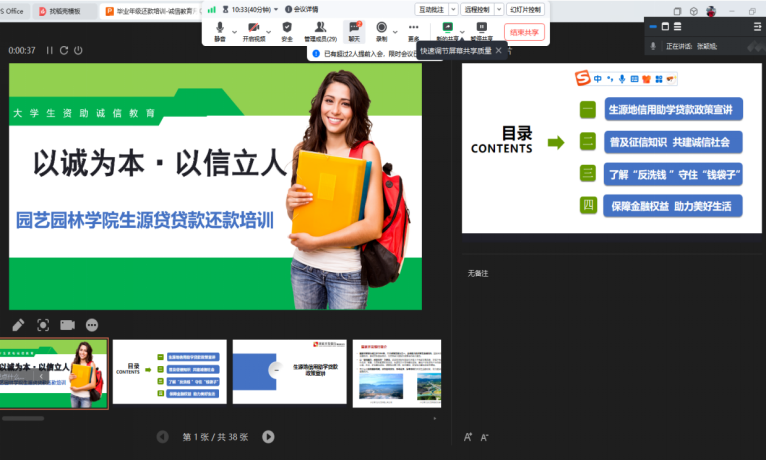 (通讯员 何璇)为切实做好毕业生助学贷款还款服务工作,6月5日,tyc5997太阳集团通过腾讯会议平台组织召开2024届毕业生生源地贷款还款培训暨诚信就业主题教育会议。公司学工办主任张颖旭主持会议,40余名办理生源地助学贷款的毕业生参加培训。