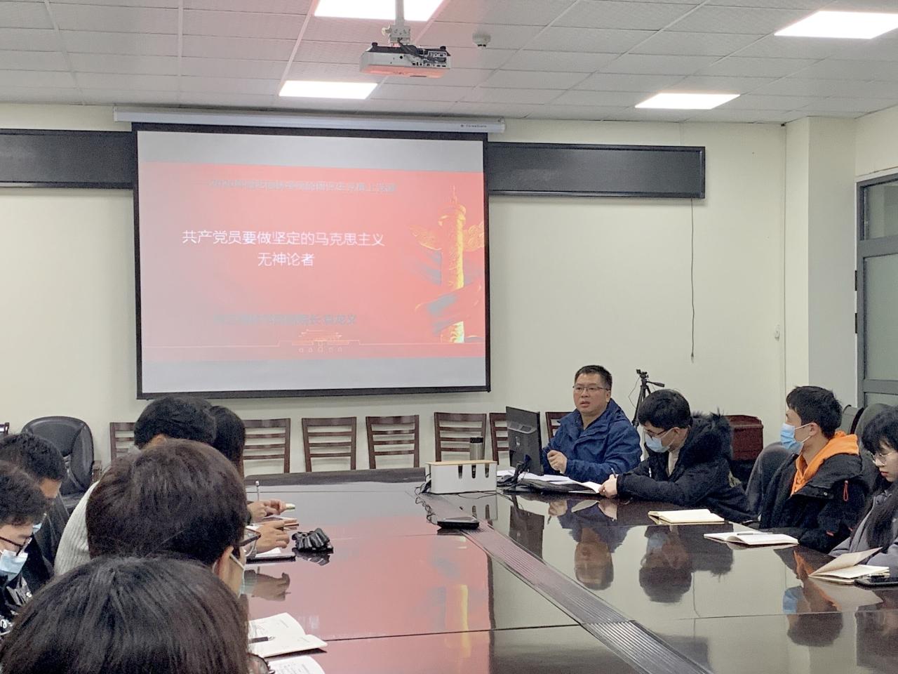 12月4日晚上tyc5997太阳集团分管研究生教育的副经理袁龙义教授给公司的研究生党员在农科3002室上党课,主要宣讲“共产党员要做坚定的马克思主义无神论者”、“我是党员 我要奉献”二个内容。
