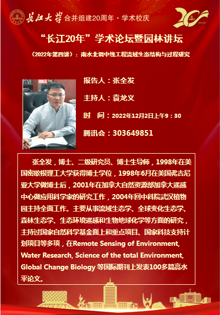 “长大20年”学术论坛暨园林讲坛 (2022年第四讲):南水北调中线工程流域生态结构与过程研究
