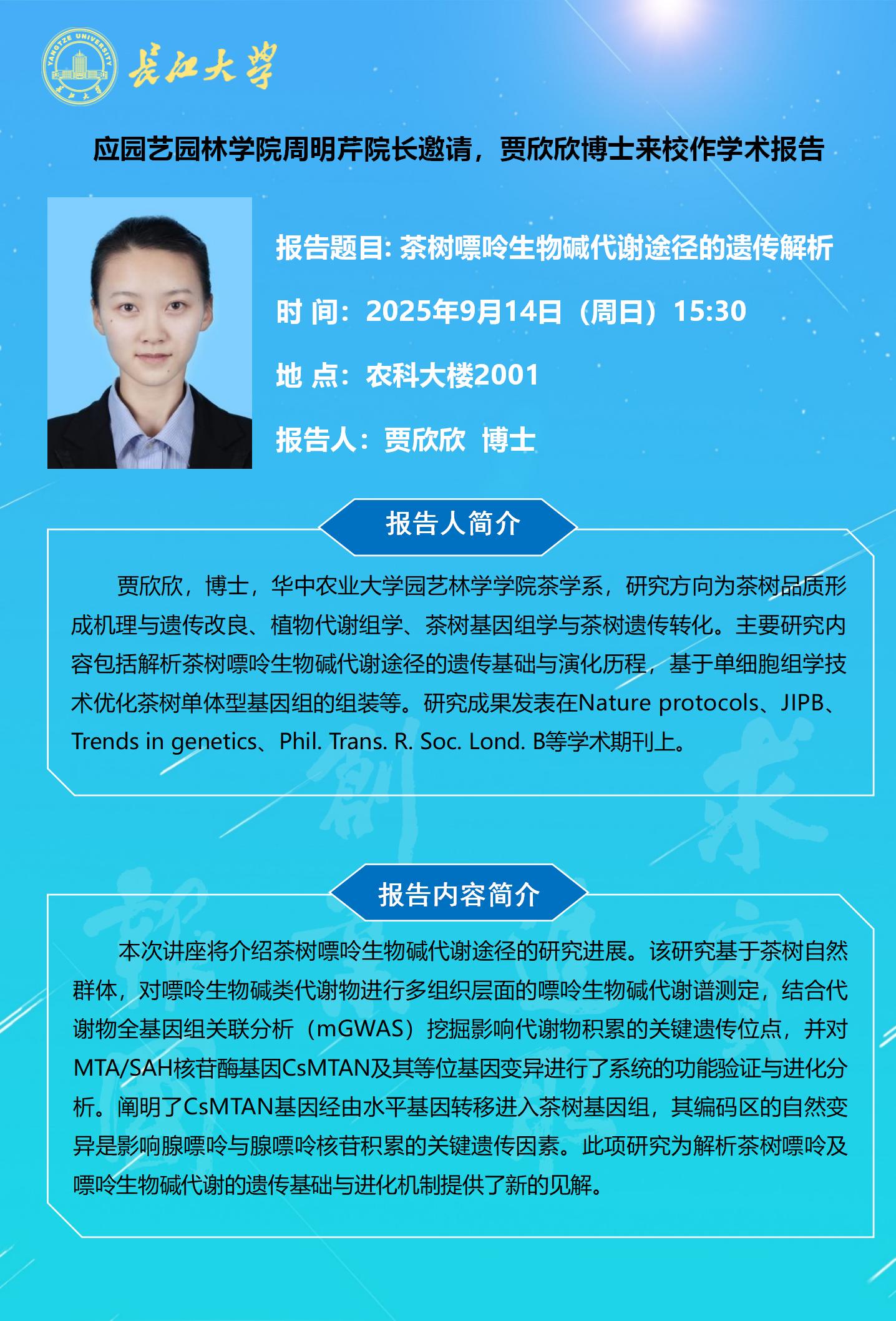 园林讲坛(2025年第十五讲):茶树嘌呤生物碱代谢途径的遗传解析