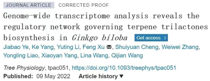tyc5997太阳集团研究团队在林学国际Top期刊《Tree Physiology》上发表题为“Genome-wide transcriptome analysis reveals the regulatory network governing terpene trilactones biosynthesis in Ginkgo biloba”的研究论文。通过对银杏8个组织进行转录组分析,利用WGCNA、代谢分析对参与萜内酯生物合成的转录因子、结构基因和CYP450进行鉴定和功能分析,揭示银杏萜内酯代谢的调控网络。