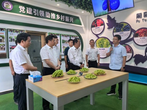(通讯:薛岩晟)2024710日,农业农村部科技司一级巡视员、党支部副书记张文一行考察调研石首市群兴缘农产品专业合作社联合社葡萄生产情况,此次考察旨在深入了解农业科技创新在葡萄产业中的应用与成效。我中心叶家保副教授向考察团详细汇报了马家垸村阳光玫瑰葡萄以及其他品种的产业发展情况和技术攻关进展,展示了如何通过科技创新推动葡萄产业的提质增效,以及如何将科研成果有效转化为实际生产力,助力乡村振兴战略的实施。张文巡视员一行对葡萄产业的提质增效工作给予了高度评价。